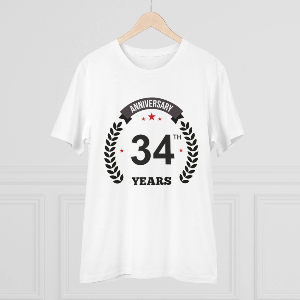 Generic Men’s PC Cotton 34th Anniversary Printed T Shirt (Color: White, Thread Count: 180GSM)