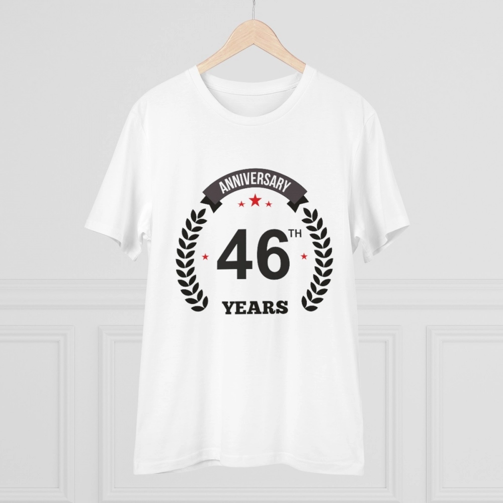 Generic Men’s PC Cotton 46th Anniversary Printed T Shirt (Color: White, Thread Count: 180GSM)