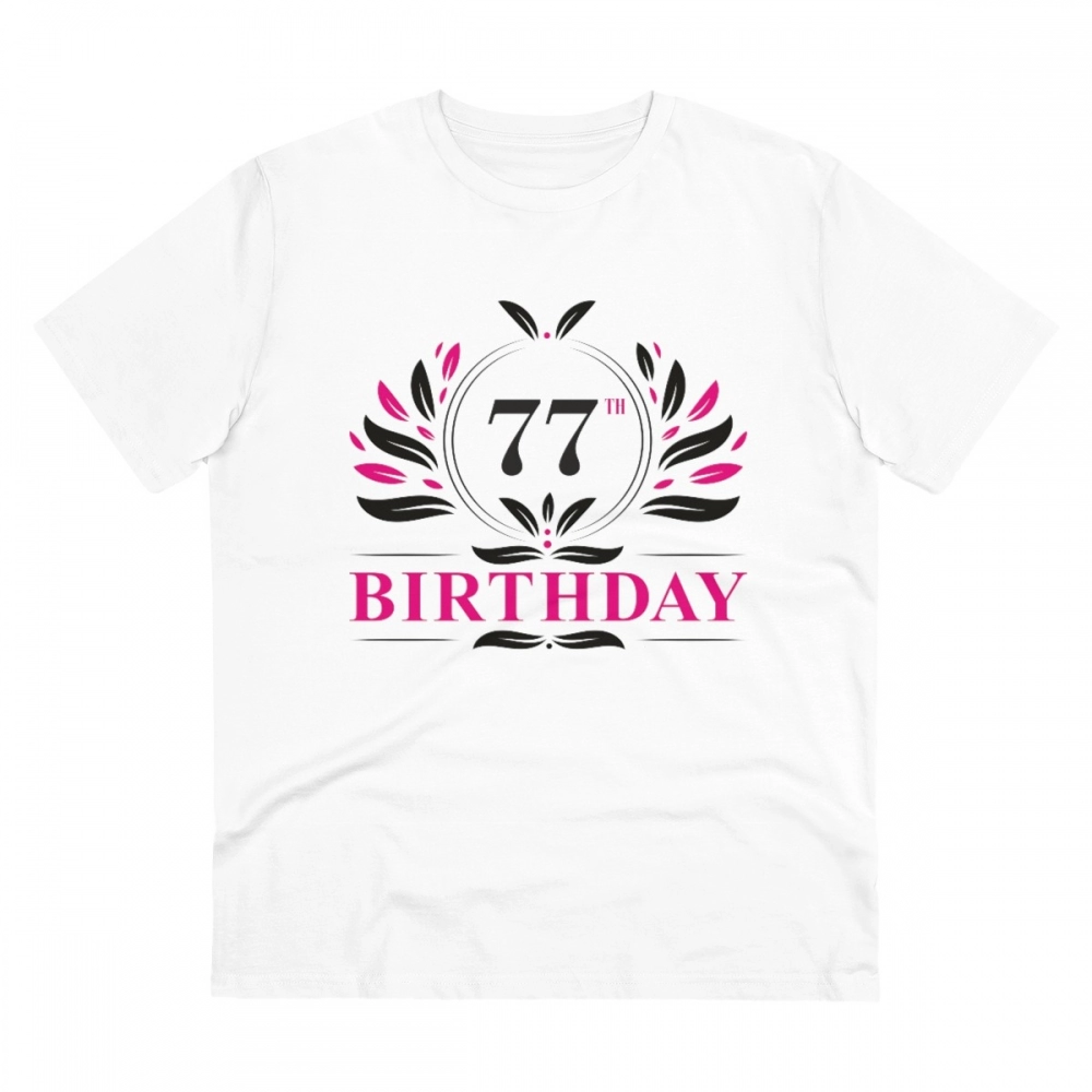 Men’s PC Cotton 77th Birthday Printed T Shirt (Color: White, Thread Count: 180GSM)