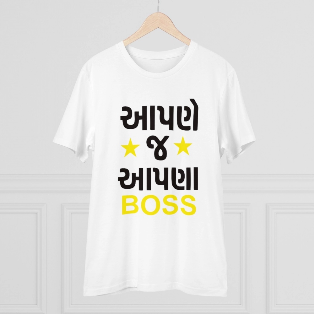 Men’s PC Cotton Aapne J Aapna Boss Printed T Shirt (Color: White, Thread Count: 180GSM)