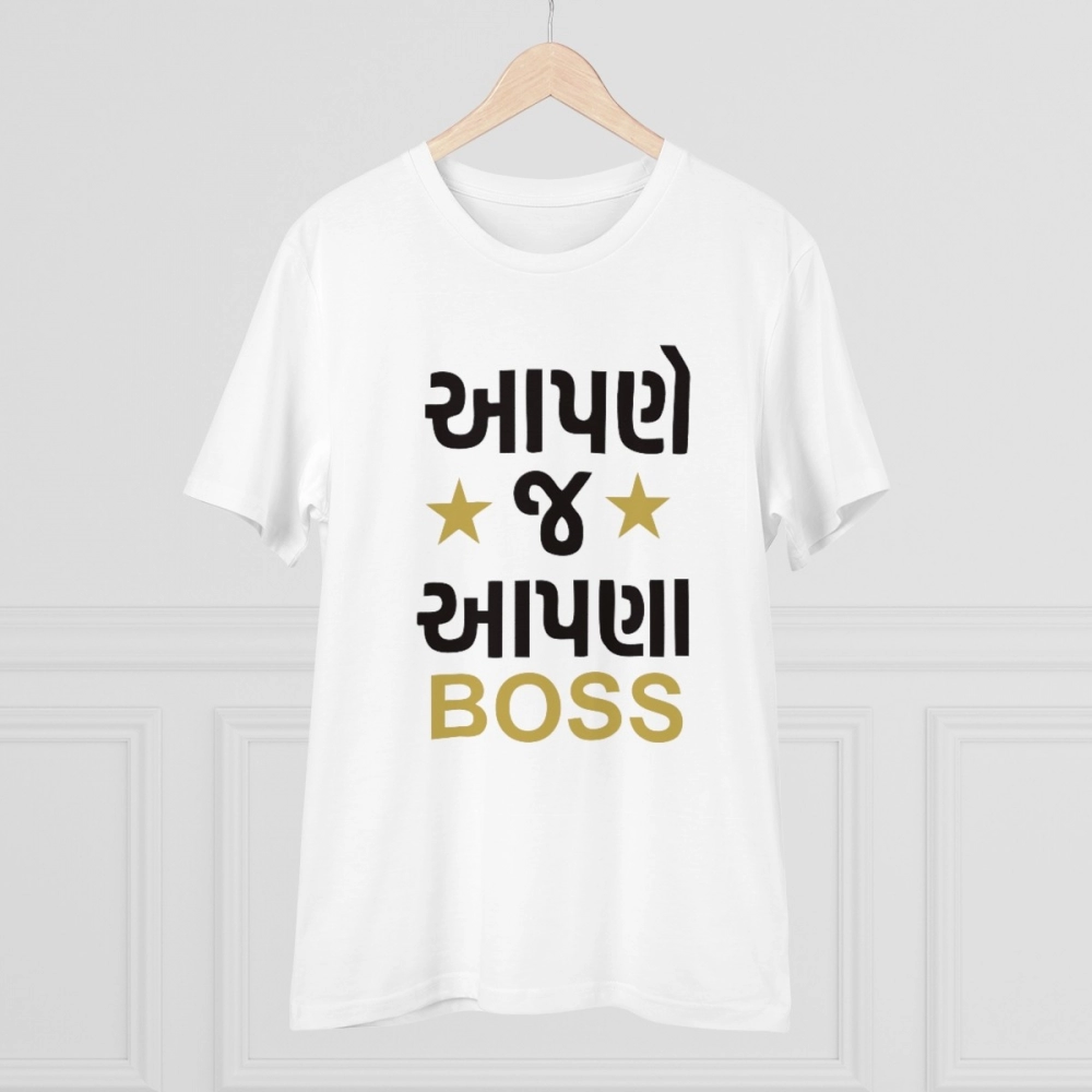 Men’s PC Cotton Aapne J Aapna Boss Printed T Shirt (Color: White, Thread Count: 180GSM)