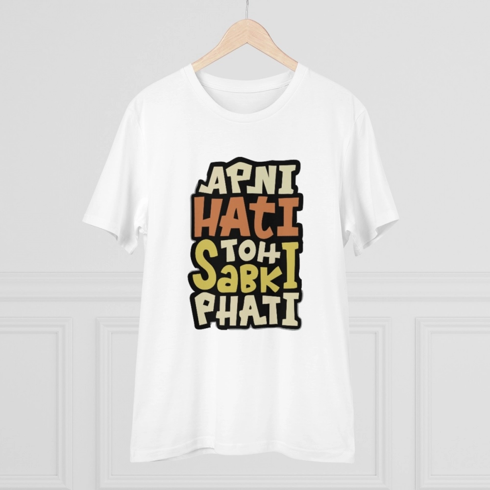 Generic Men’s PC Cotton Apni Hati To Sabki Phati Printed T Shirt (Color: White, Thread Count: 180GSM)