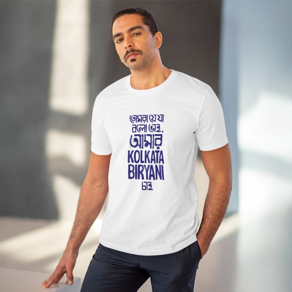 Men’s PC Cotton Bengali Designs Printed T Shirt (Color: White, Thread Count: 180GSM)