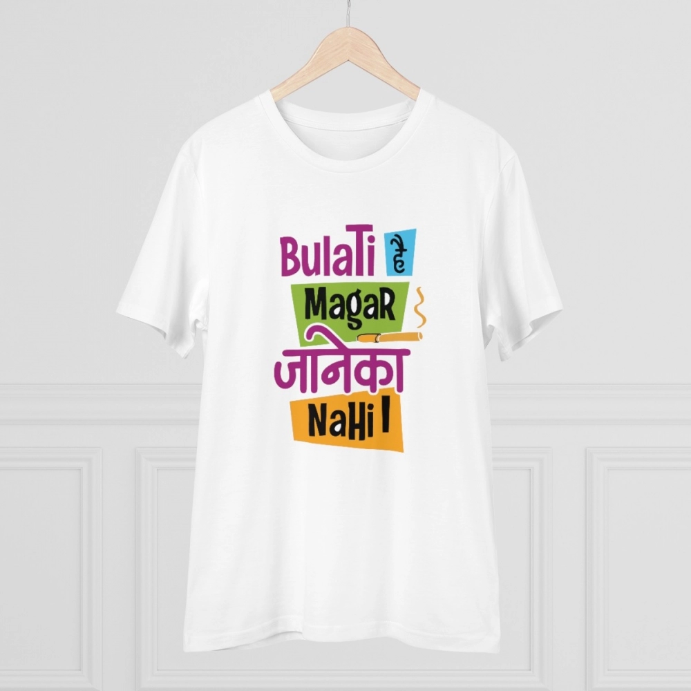 Generic Men’s PC Cotton Bulati Hai Magar Jane Ka Nahi Printed T Shirt (Color: White, Thread Count: 180GSM)
