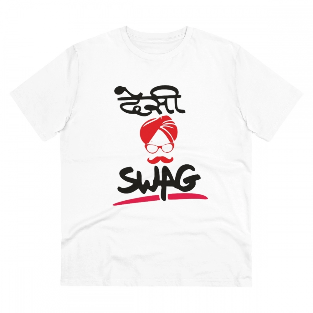 Men’s PC Cotton Desi Swag Printed T Shirt (Color: White, Thread Count: 180GSM)