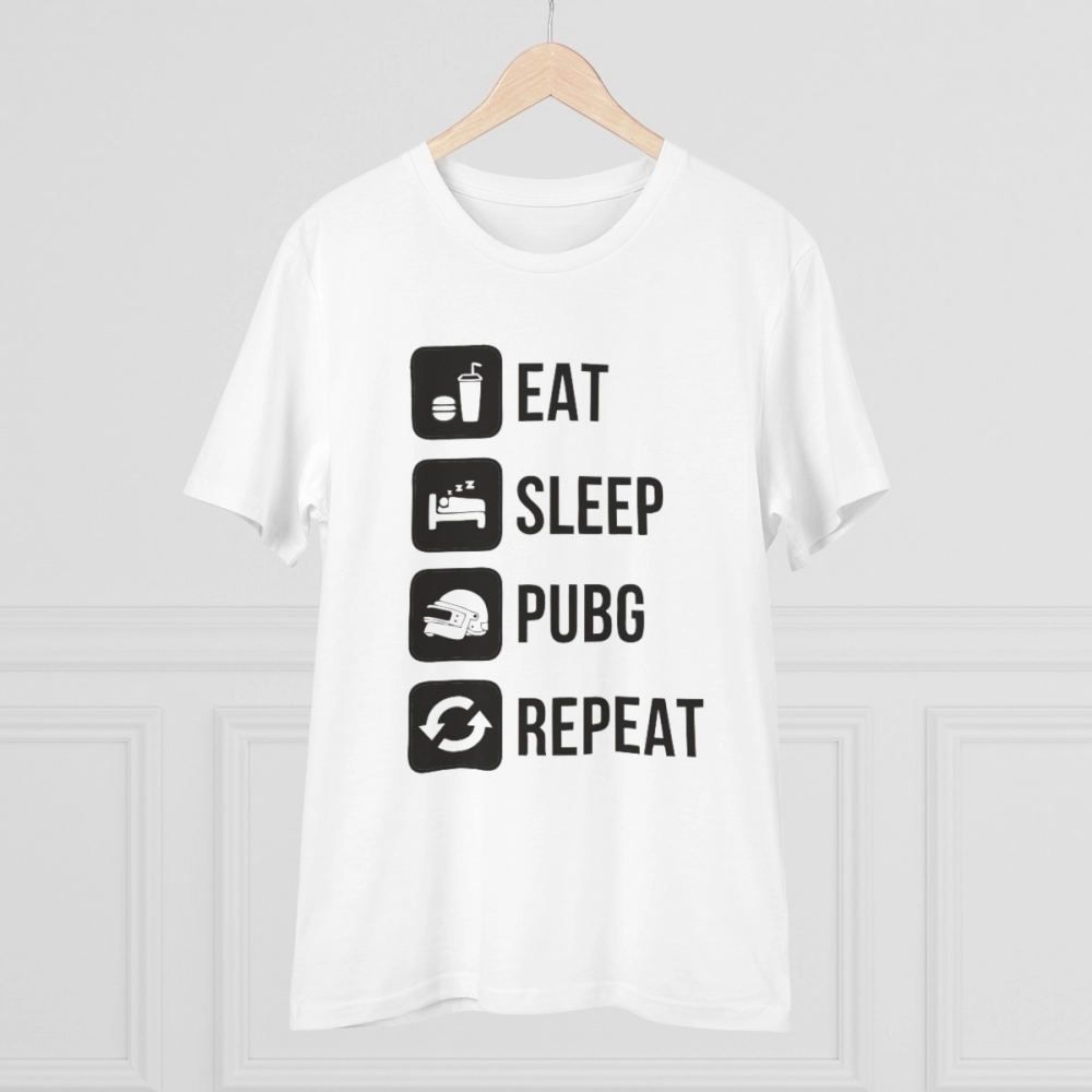 Generic Men’s PC Cotton Eat Sleep Pubg Repeat Printed T Shirt (Color: White, Thread Count: 180GSM)