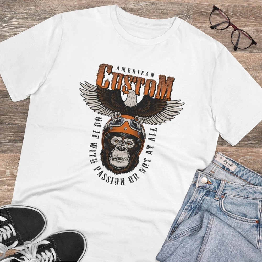 Men’s PC Cotton Gorila Desing Printed T Shirt (Color: White, Thread Count: 180GSM)