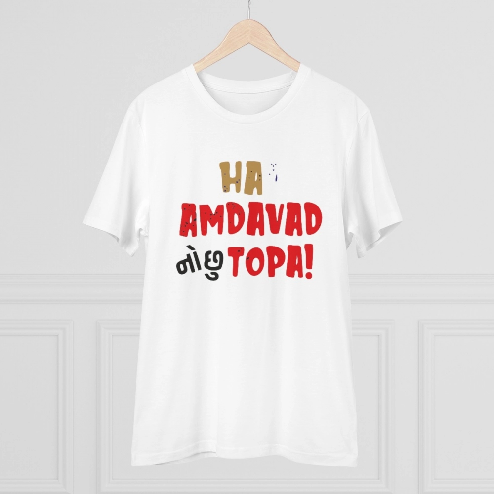 Generic Men’s PC Cotton Ha Amdavad No Chu Topa Printed T Shirt (Color: White, Thread Count: 180GSM)