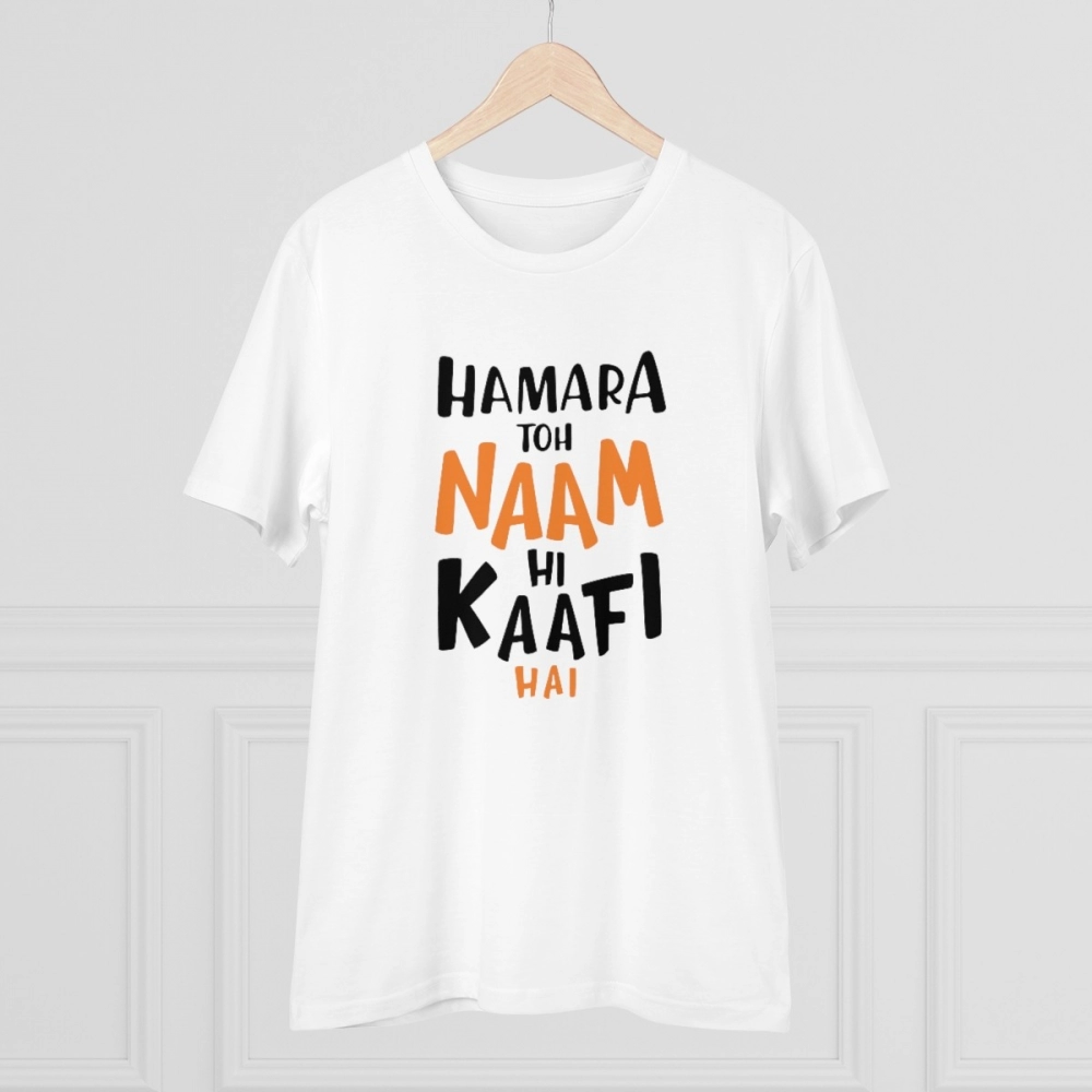Generic Men’s PC Cotton Hamara To Name Hi Kaafi Hai Printed T Shirt (Color: White, Thread Count: 180GSM)