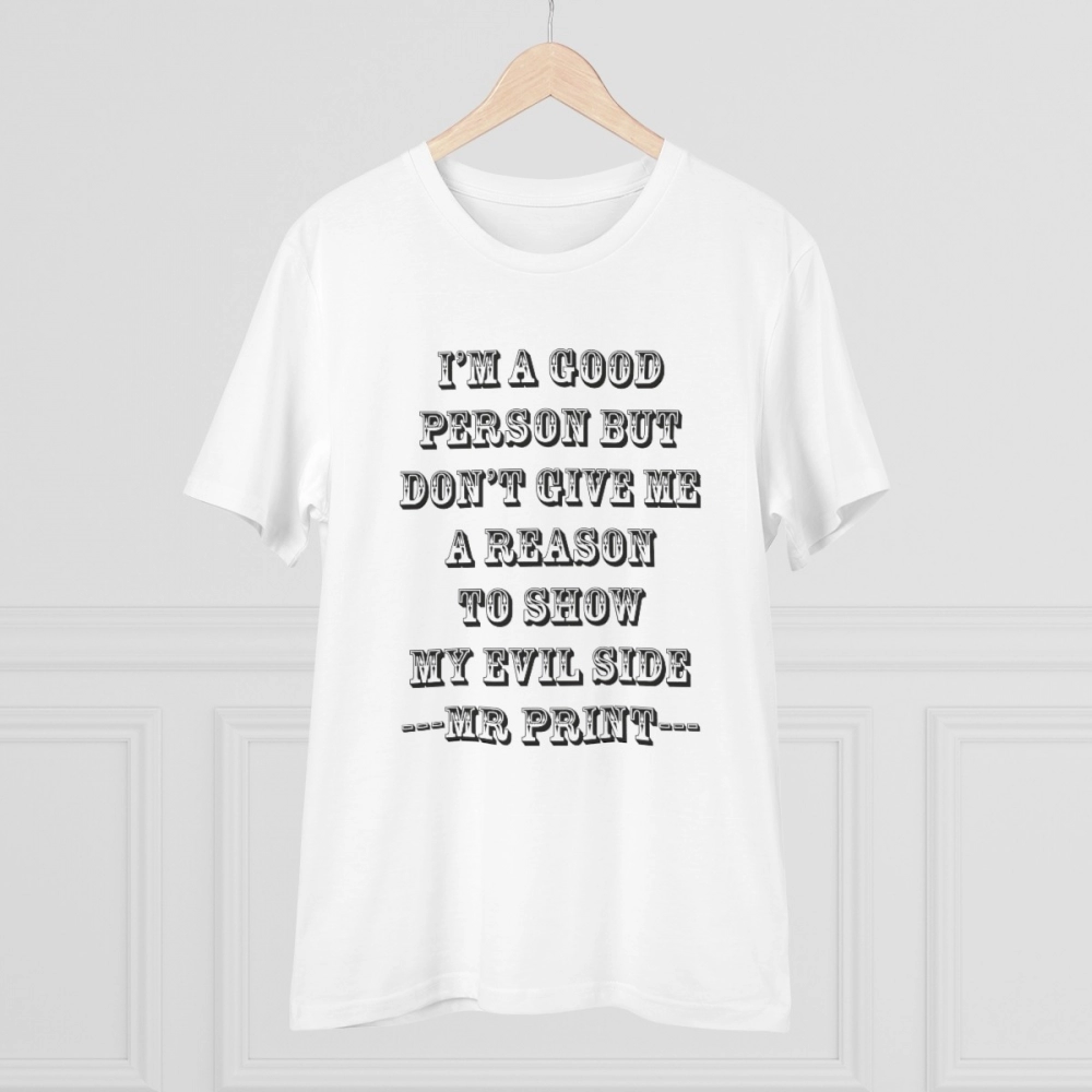 Men’s PC Cotton I Am Good Person Printed T Shirt (Color: White, Thread Count: 180GSM)