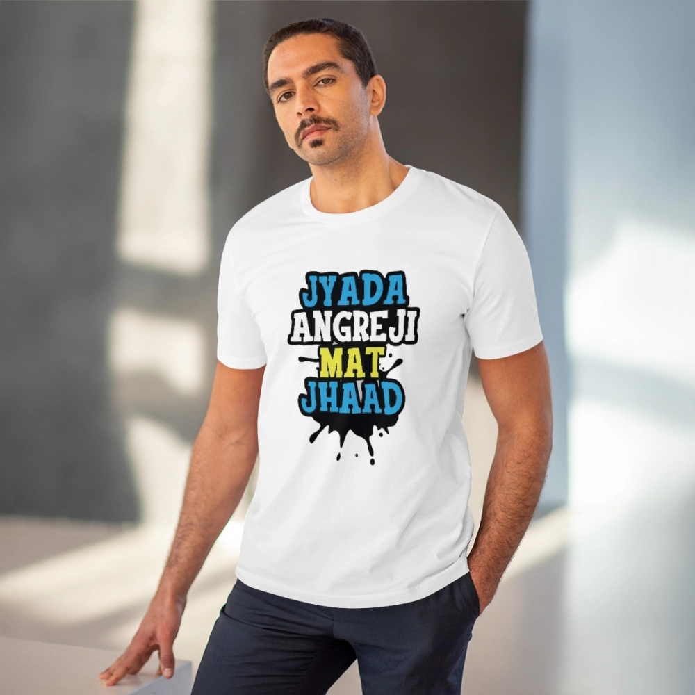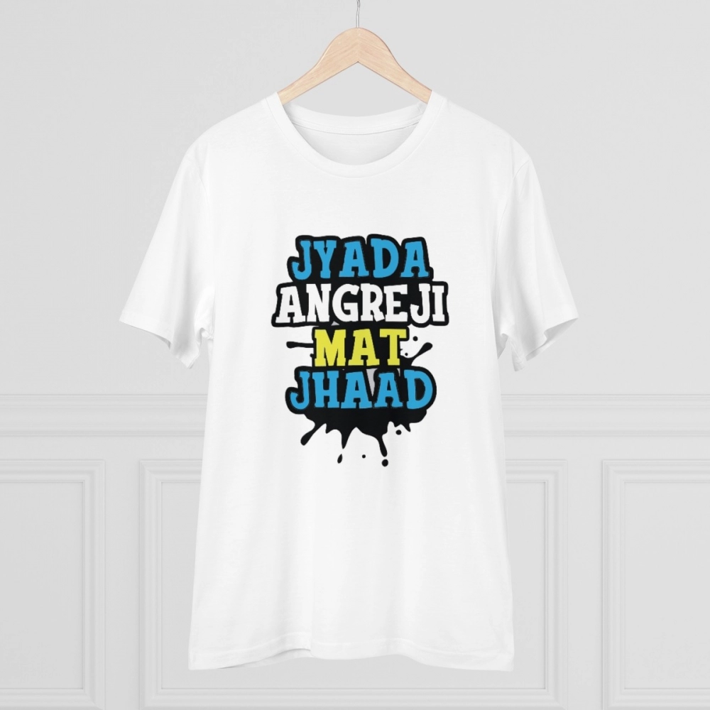 Generic Men’s PC Cotton Jyada Angreji Mat Jhaad Printed T Shirt (Color: White, Thread Count: 180GSM)