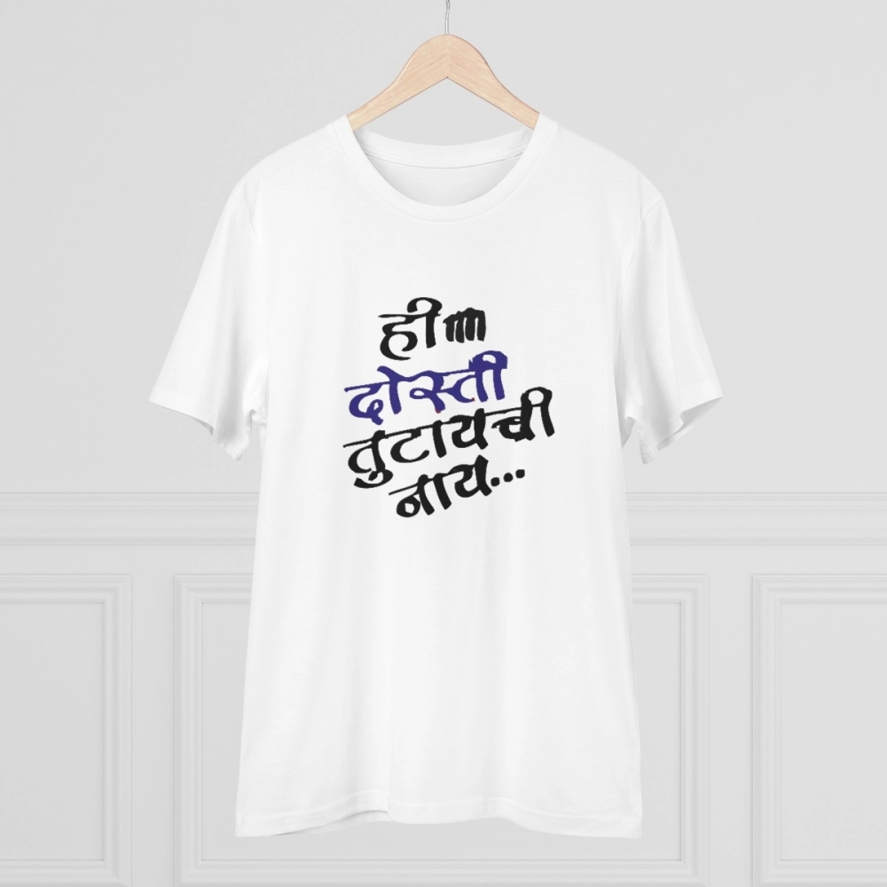 Men’s PC Cotton Marathi Desing Printed T Shirt (Color: White, Thread Count: 180GSM)