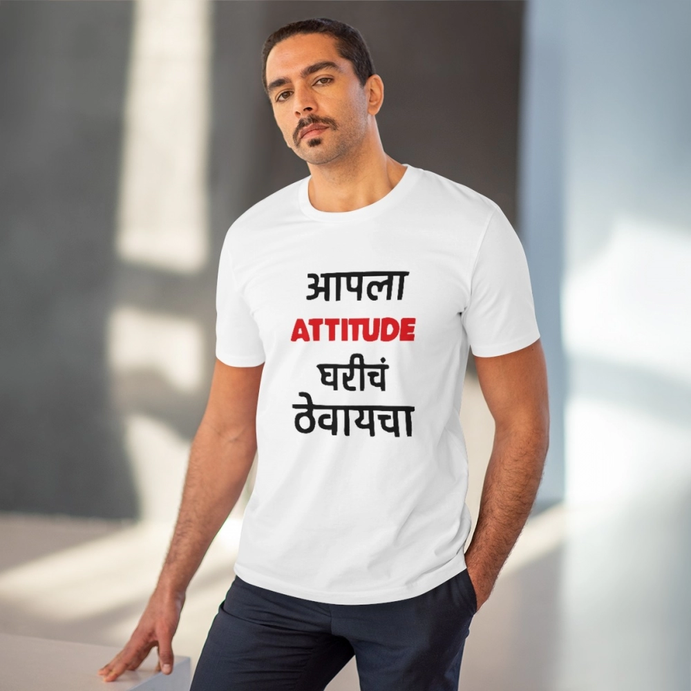 Men’s PC Cotton Marathi Desing Printed T Shirt (Color: White, Thread Count: 180GSM)