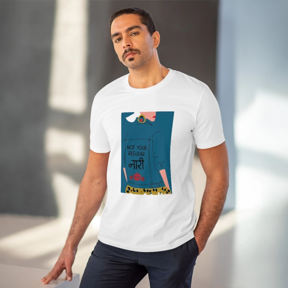 Men’s PC Cotton Not Your Regular Naari Printed T Shirt (Color: White, Thread Count: 180GSM)