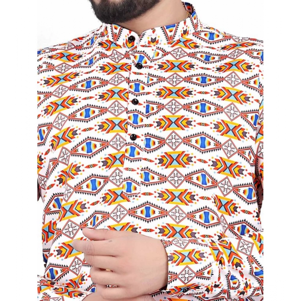Generic Men’s Cotton Blended Printed Full Sleeve Shortkurta (Multicolor)
