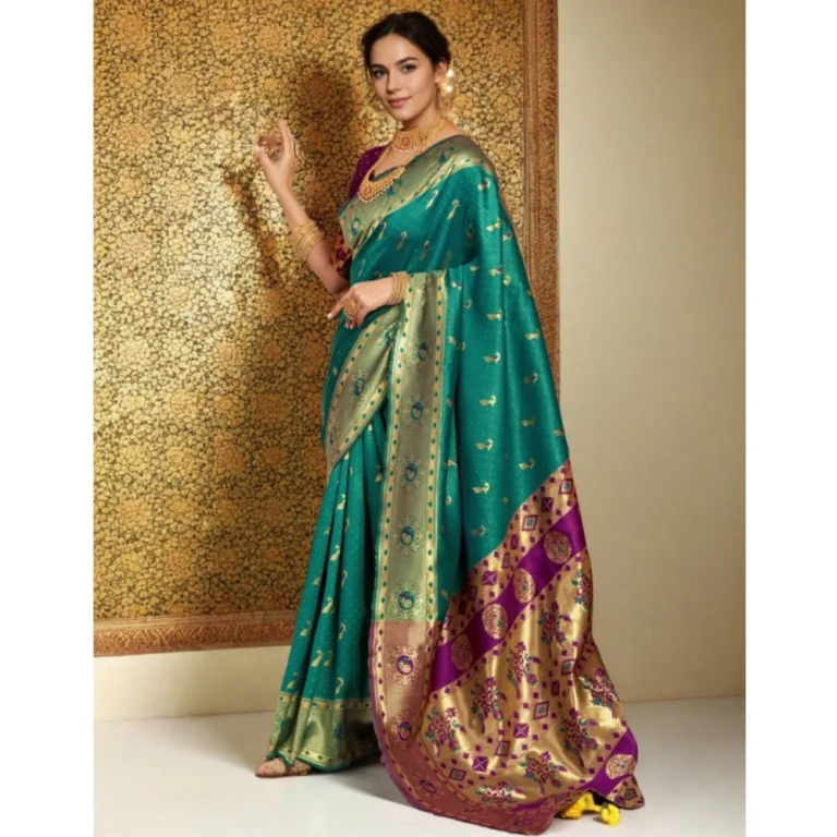 Generic Women’s Silk Blend Woven Saree With Unstitched Blouse 5.5Mtr (Green)