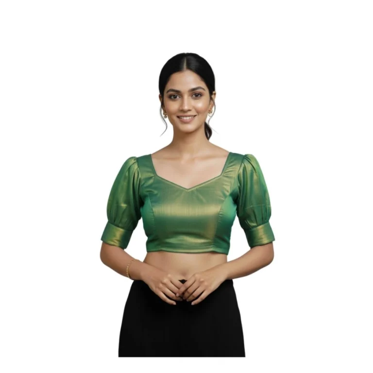 Generic Women’s Erode Silk V Neck Padded Blouse (Green, 38 Ready Size (Self-Alterable 36–40)