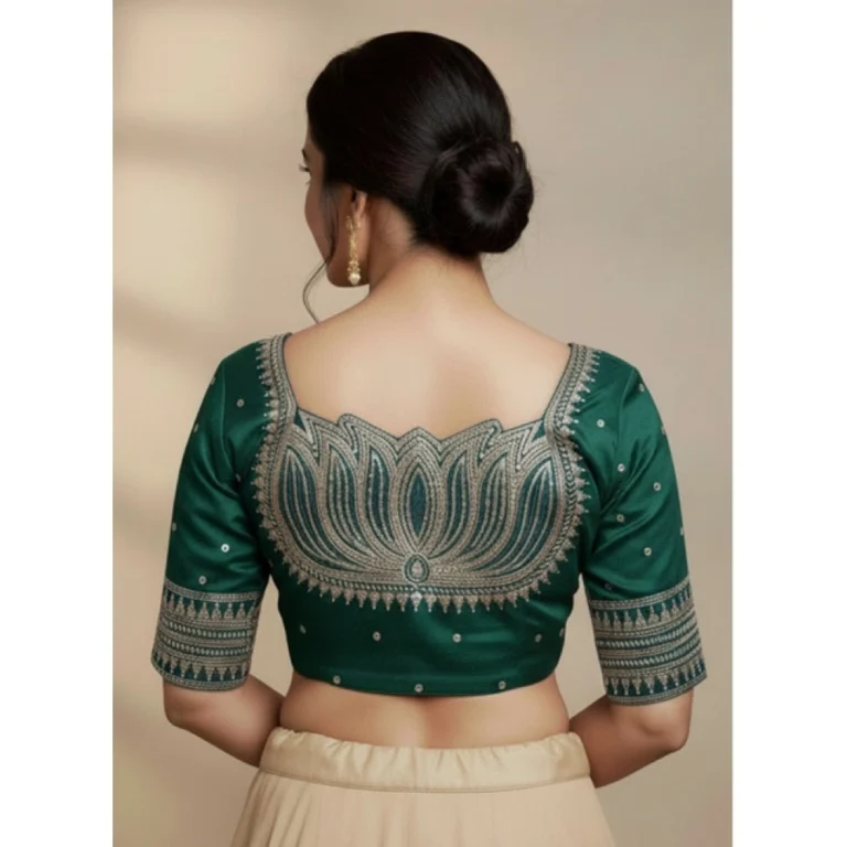 Generic Women’s Vichitra Silk V Neck Padded Blouse (D-Green, 38 Ready Size (Self-Alterable 36–40)
