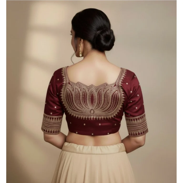 Generic Women’s Vichitra Silk V Neck Padded Blouse (Maroon, 38 Ready Size (Self-Alterable 36–40)