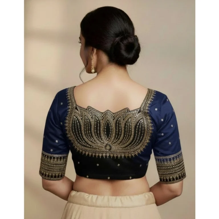 Generic Women’s Vichitra Silk V Neck Padded Blouse (Navy, 38 Ready Size (Self-Alterable 36–40)