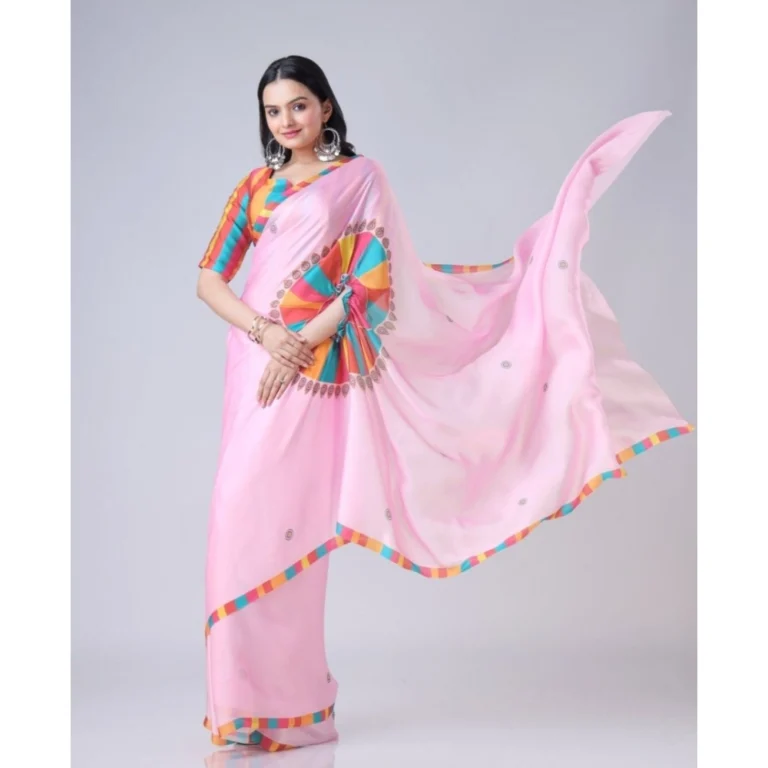 Generic Women’s Soft Crepe Silk Printed Ready To Wear Saree With Unstitched Blouse 5.5Mtr (Pink)