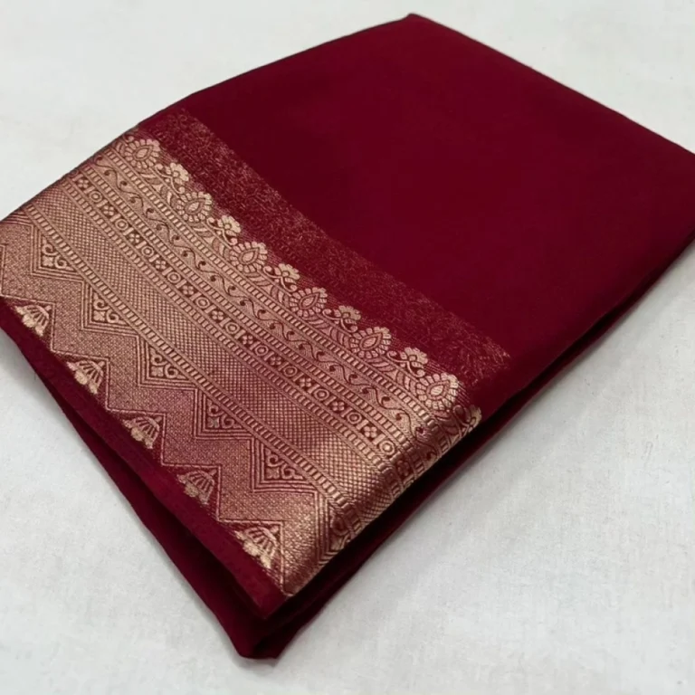 Generic Women’s Crepe Chit Pallu Solid Saree With Unstitched Blouse 5.5Mtr (Maroon)