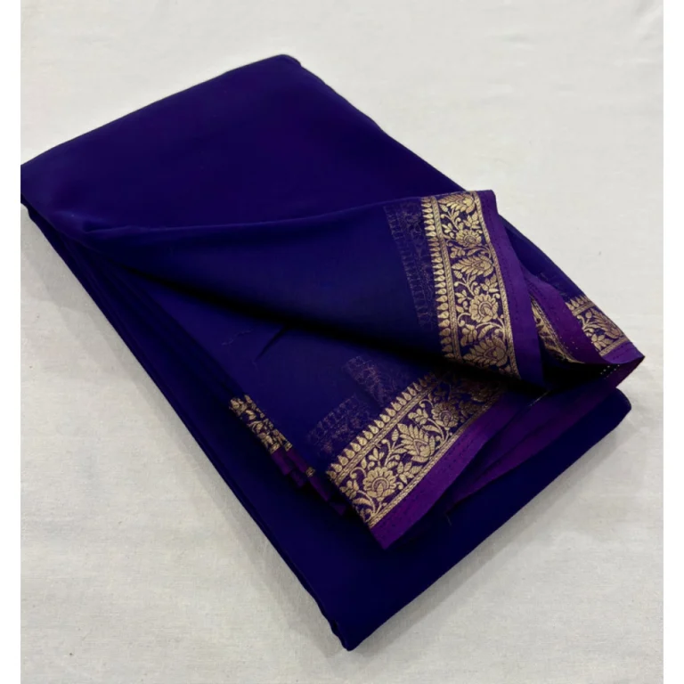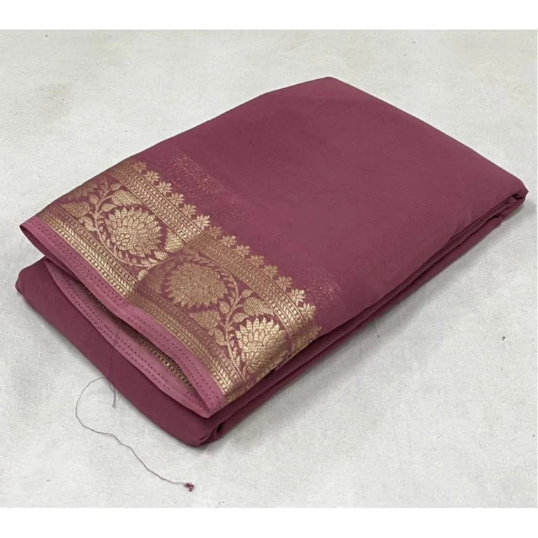 Women’s Crepe Chit Pallu Solid Saree With Unstitched Blouse 5.5Mtr