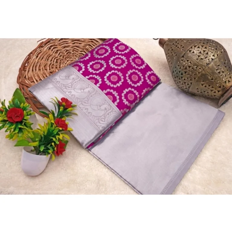 Women’s Banarasi Jacquard Printed Saree With Unstitched Blouse 5.5Mtr