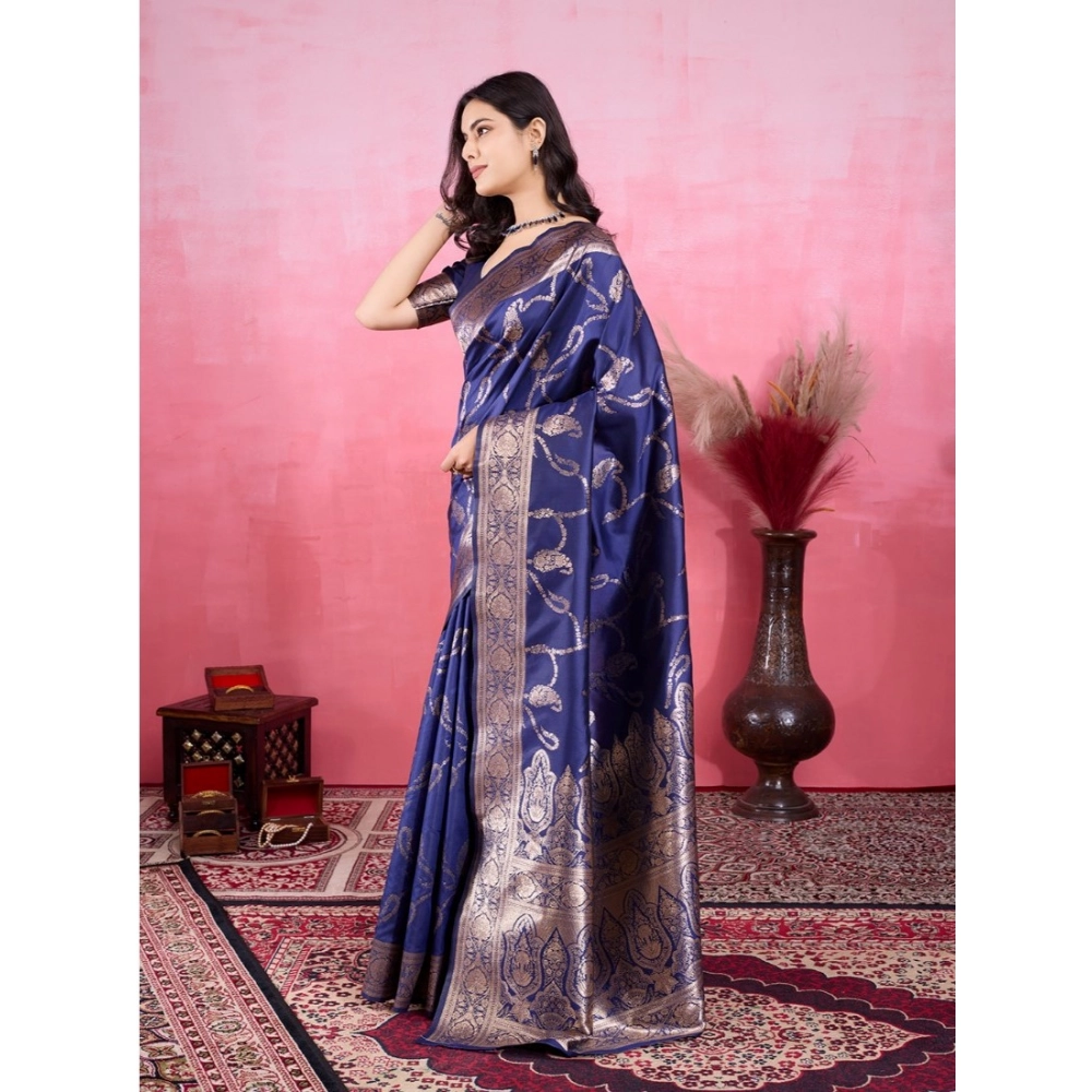 Women’s Banarasi Silk Printed Saree With Unstitched Blouse 5.5Mtr