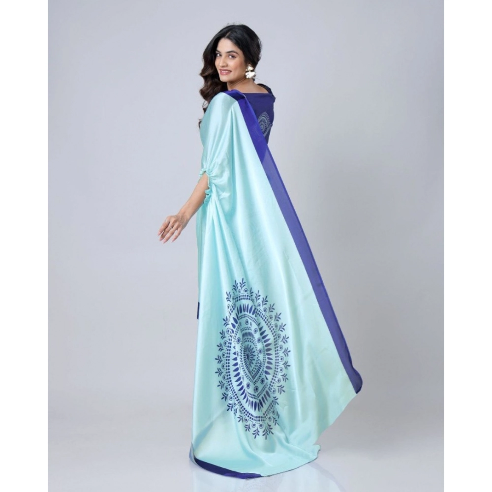 Generic Women's Soft Crepe Silk Printed Ready To Wear Saree With Unstitched Blouse 5.5Mtr (Sky Blue)