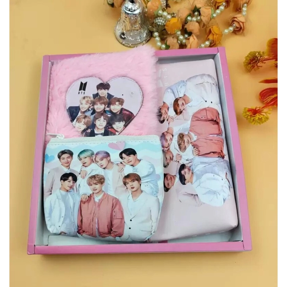 Prezzie Villa 3 in 1 Black Pink Stationery Set for Kids in Multicolor 2 Pouches and 1 Pocket Diary Set Soft Furr Stationery