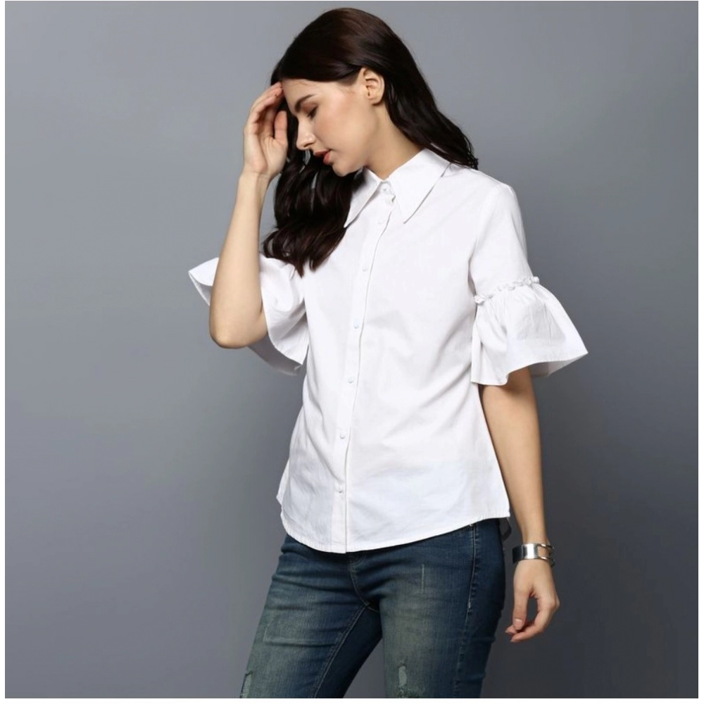 Generic Women’s Cotton Solid Bell Sleeve Top (White)
