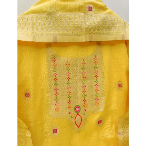 Generic Women’s Banarasi Silk Printed Unstitched Salwar Suit Material With Dupatta (Yellow, 3Mtrs)