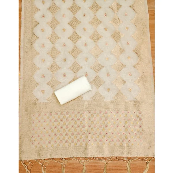 Generic Women’s Banarasi Silk Printed Unstitched Salwar Suit Material With Dupatta (OffWhite, 3Mtrs)