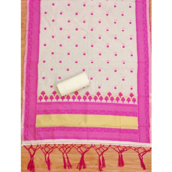 Generic Women’s Banarasi Silk Printed Unstitched Salwar Suit Material With Dupatta (White, 3Mtrs)