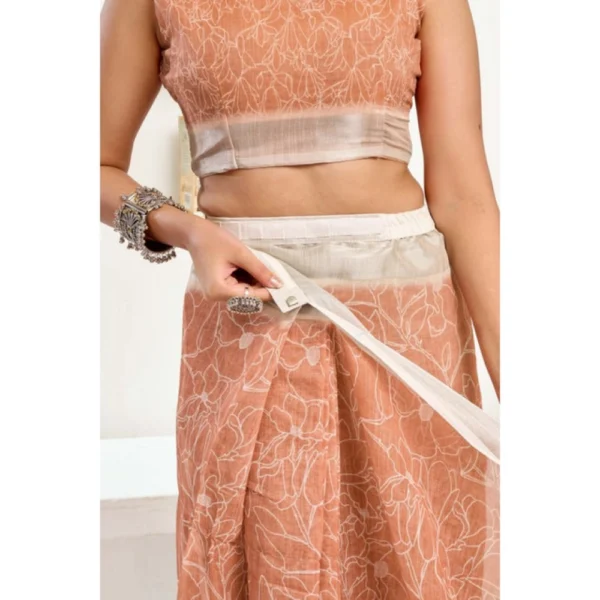 Generic Women’s Linen Cotton Printed Ready To Wear Saree With Unstitched Blouse 5.5 Mtr (Peach)