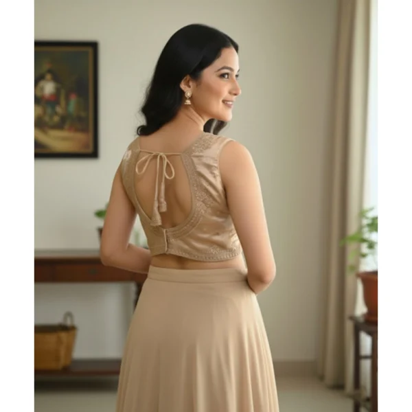 Generic Women’s Zimmi Choo Sequin Work V-Neck Padded Blouse (Beige 38 Ready (Self Alterable 36–40)
